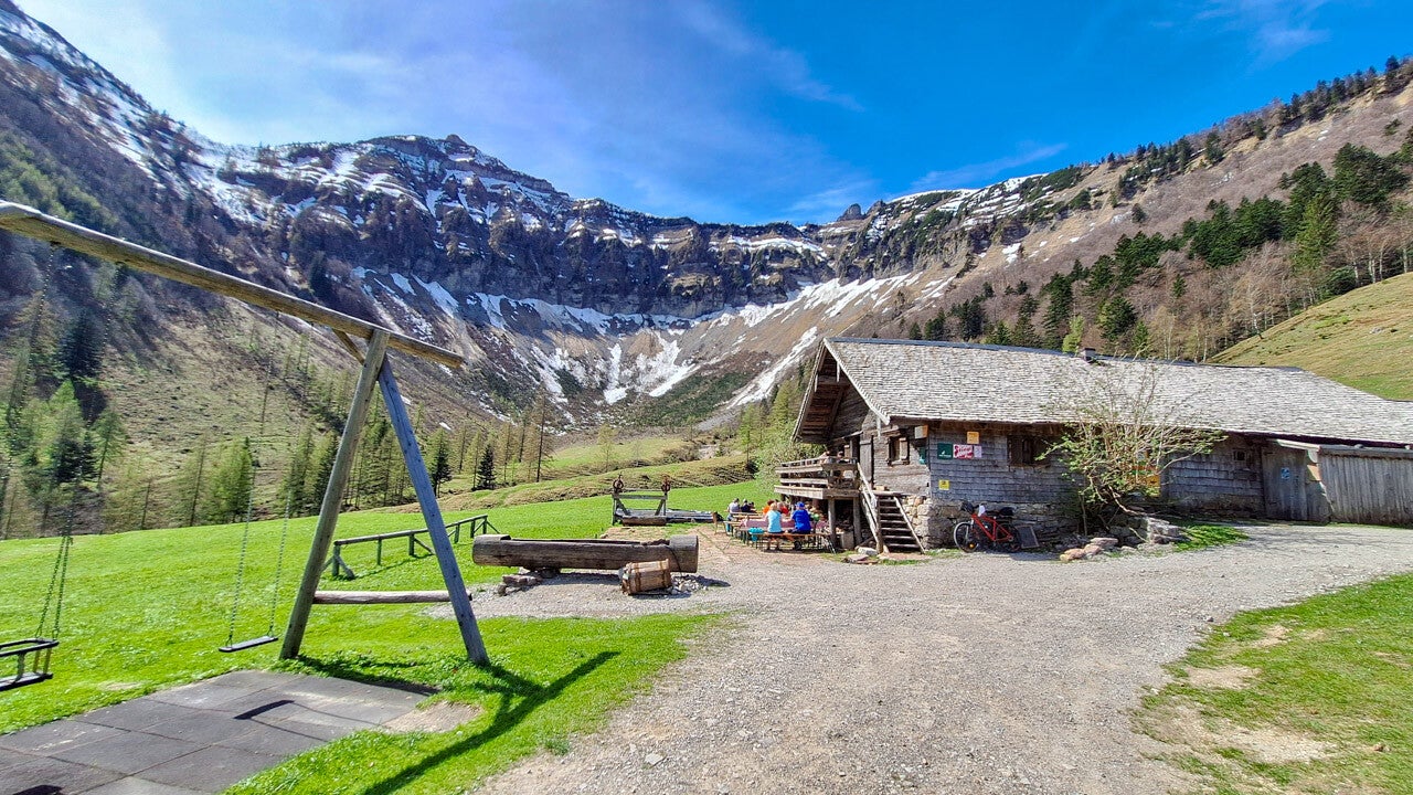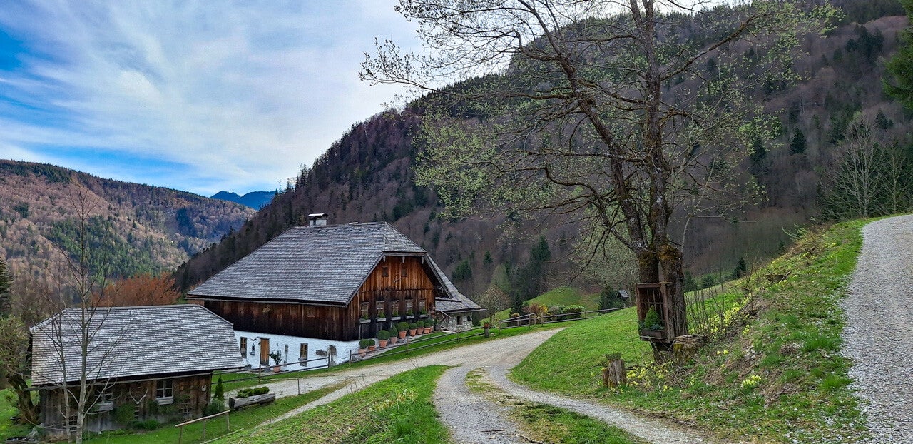 Bei der Gruberalm habe ich mich dann mit Holler-Leitung und Kaffee belohnt 😋 !!! Nachteilig war allerdings, dass die Gruberalm auf der anderen Seite des Berges liegt. Somit musste ich ins Tal runter und den Berg umrunden. Etwas gekühlt hat mich dabei der Lämmerbach!