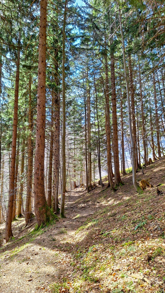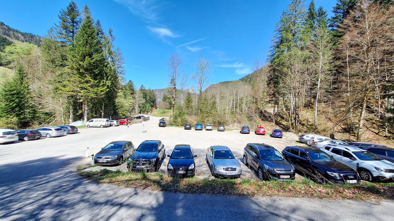 Und ich bin auch standardmäßig beim kostenpflichtigen Waldparkplatz (EUR 4,00 pro Fahrzeug und Tag) gestartet - da gab's auch nur zwei Fahrzeuge auf diesem riesigen Parkplatz. Um zum Gipfelkreuz zu kommen, muss man zuerst mal 450 Höhenmeter einer bissigen Forststrasse hochwandern 🥵. Gott sei Dank war's im Wald noch schattig - es war ja ein Hitzetag angesagt. Wenn man dann aus dem Wald rauskommt, wird's flach und man kann gemütlich über eine Almlandschaft zum Gipfelkreuz wandern 🥾.