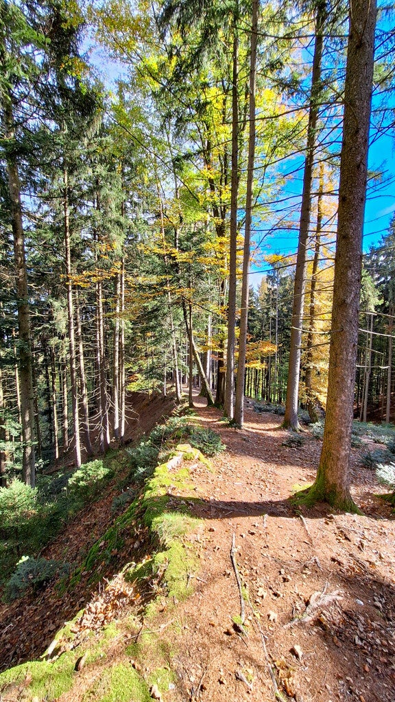 Man kann dann den Rundweg bequem weitergehen und kommt dann wieder zu einer Asphaltstrasse, welche dann direkt bis in den Ort hineinführt. Auf dem Weg gibt's dann wieder tolles Panorama, bunte Bäume - mir sind auch viele freundliche und gesprächige Menschen begegnet.