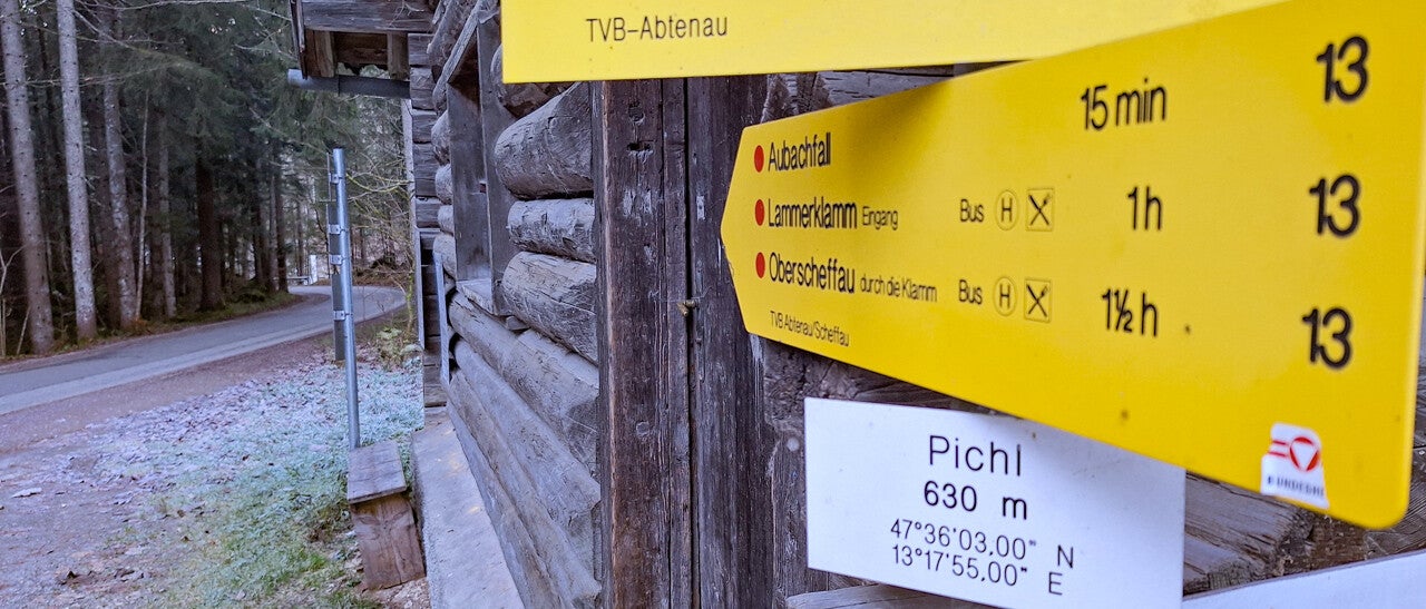 Ich hatte wirklich wenig Zeit und etwas Frischluft wollte ich am Nachmittag noch tanken. Der kostenlose Parkplatz in Pichl (Gemeindegebiet Abtenau) war ein optimaler Startplatz für mich. Ziel war nämlich der wenig bekannte Aubachfall.
