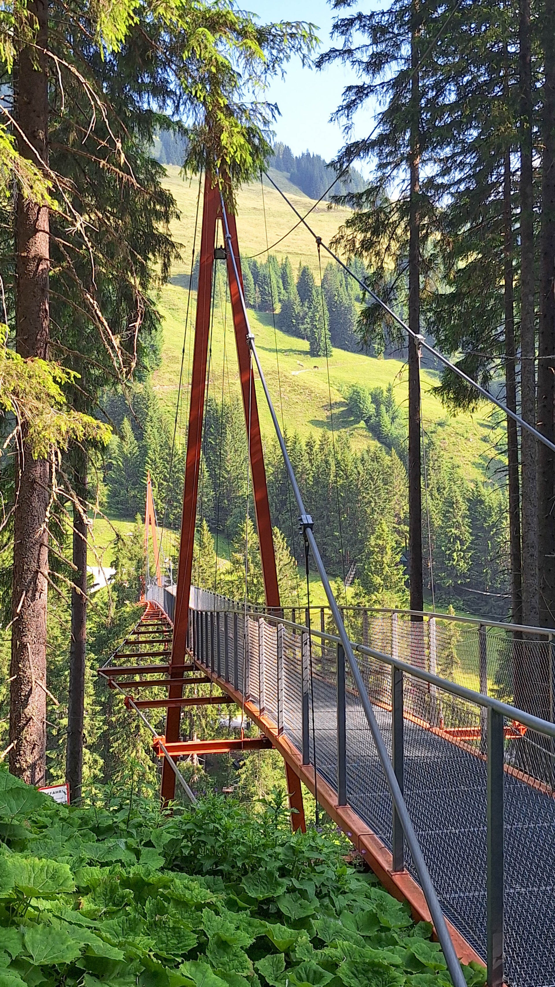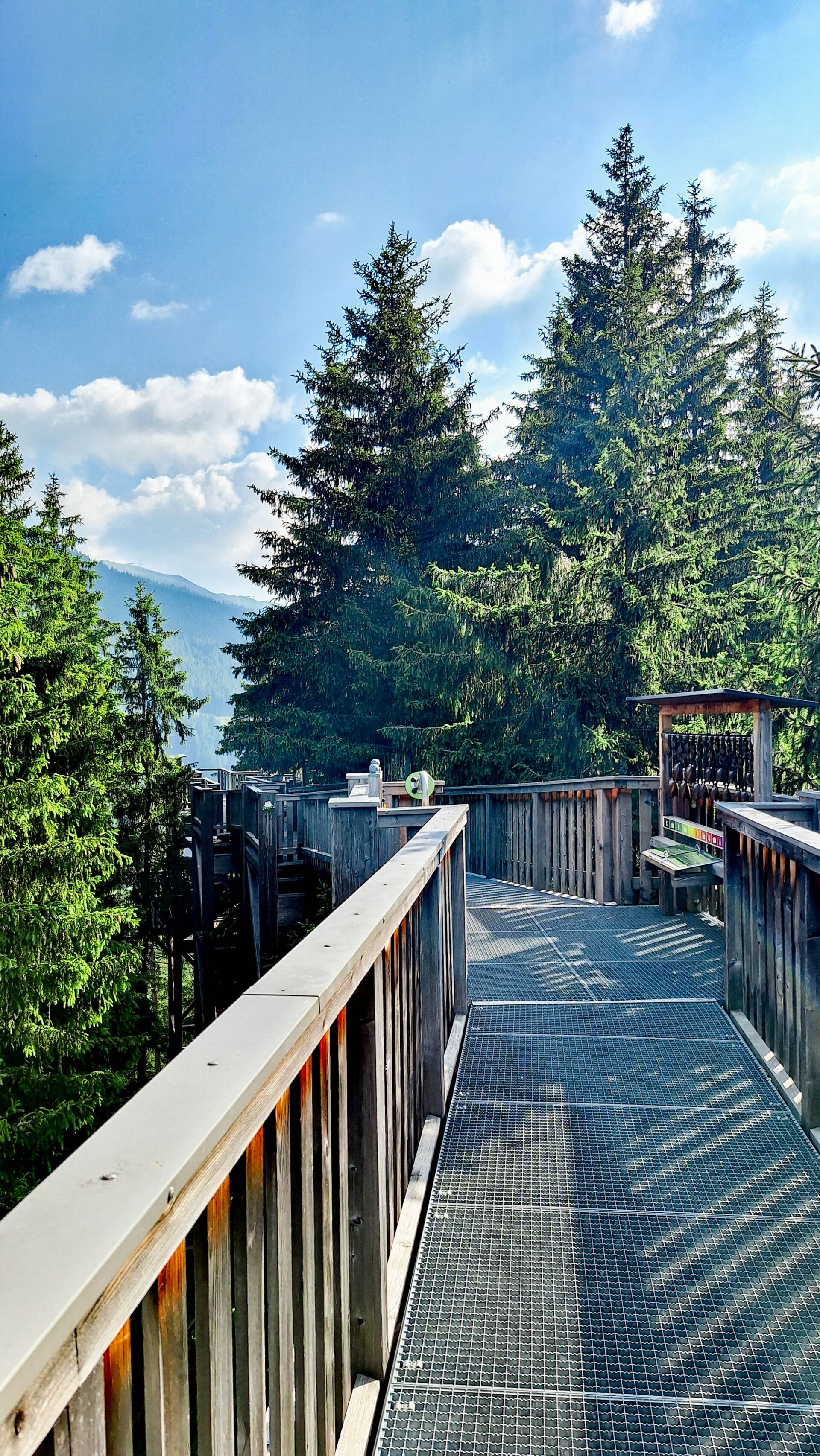 Man findet bei der Lindlingalm in unmittelbarer Nähe den höchsten Hochseilpark Europas - für mich war allerdings die "Golden Gate Brücke der Alpen" 🤩 wesentlich interessanter. Die Brücke ist 200 m lang und bis zu 42 m hoch - der Boden dieser Brücke besteht aus Eisengittern mit Blickmöglichkeit nach unten. Am anderen Ende der Brücke befindet sich der Baumzipfelweg - war lässig. Kostenpunkt EUR 9,00 pro Person. Achtung: man muss auch über die Brücke wieder retour - bedenkt das bei eurer Planung.