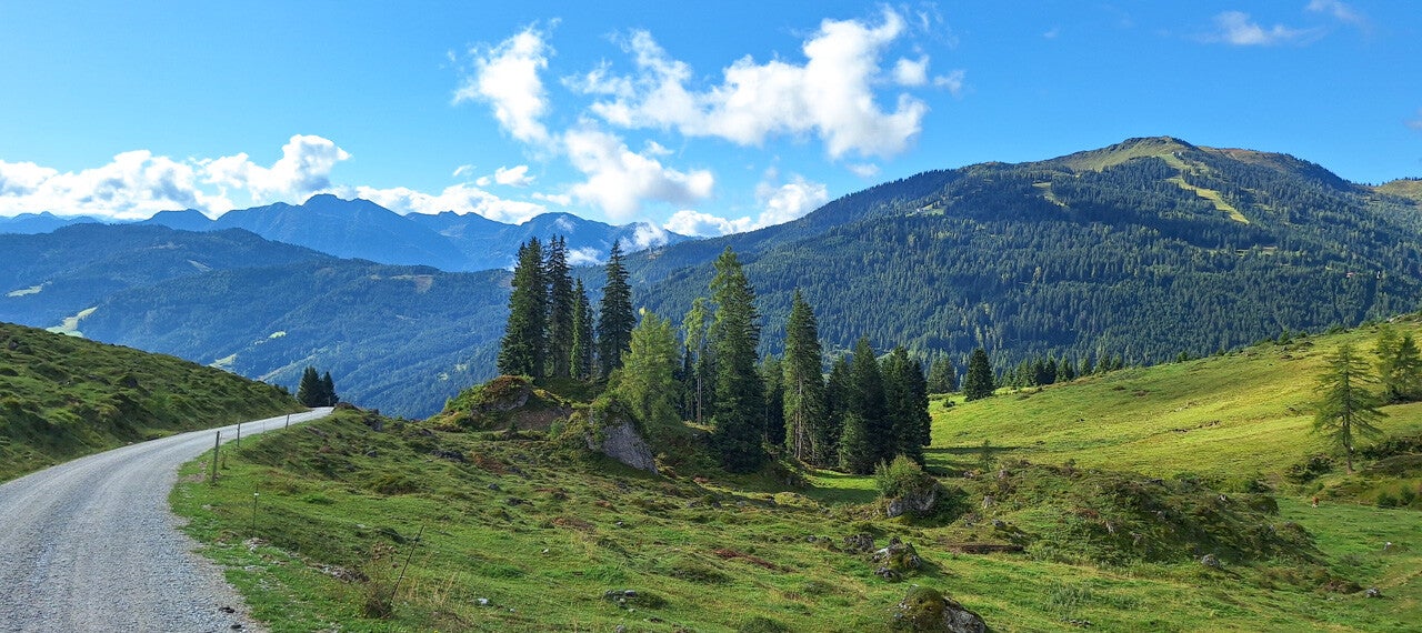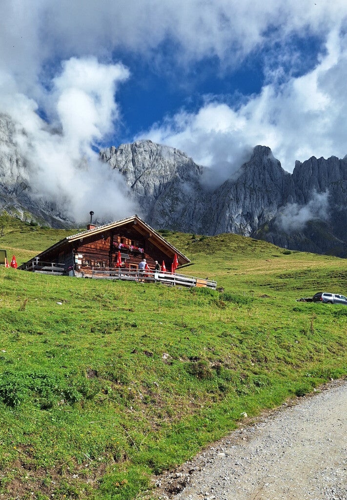 Am Plan stand eigentlich eine Tour in Dienten, wegen dem Triathlon im Pinzgau habe ich mich aber für eine Sonnenrunde bei den Mandlwänden (Hochkönig) entschieden. Start war beim unteren und kostenlosen Parkplatz der Kopphütte. Von dort ging's zuerst mal 50 Höhenmeter im 'frischen' Schatten runter, damit man ab dann eine Sonnenrunde mit vielen Berghütten (Kopphütte, Brandstattalmhütte, Molteraualmhütte, Schartenalmhütte) drehen kann. Ich bin erst bei der letzten Almhütte (Windraucheggalmhütte) eingekehrt und das hat einen einfachen Grund: