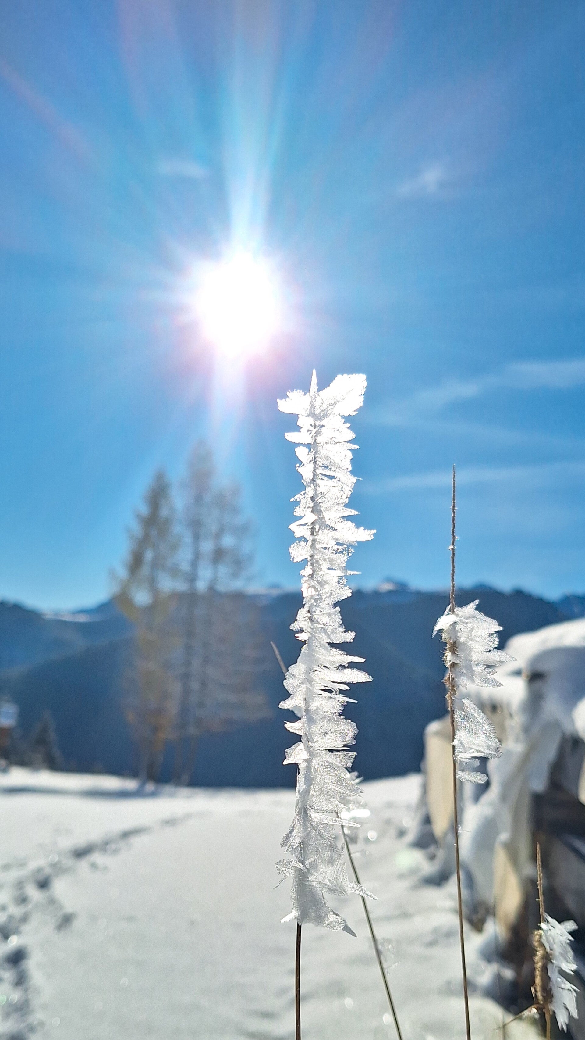Mein Ziel war eine Winterwanderung, es war sehr frostig im Schatten, in der Sonne hingegen kam man schnell ins Schwitzen. Und im Winter empfehle ich auch Bergstecken (zumindest) für den Abstieg - geräumt sind nur die Anfahrtswege zu Häusern, alle anderen Wege sind nur Fußwege und dementsprechend auch 'uneben'. Haube, Handschuhe und ein Heißgetränk sowie ein voller Handyakku sind sowieso klar bei Winterwanderungen.