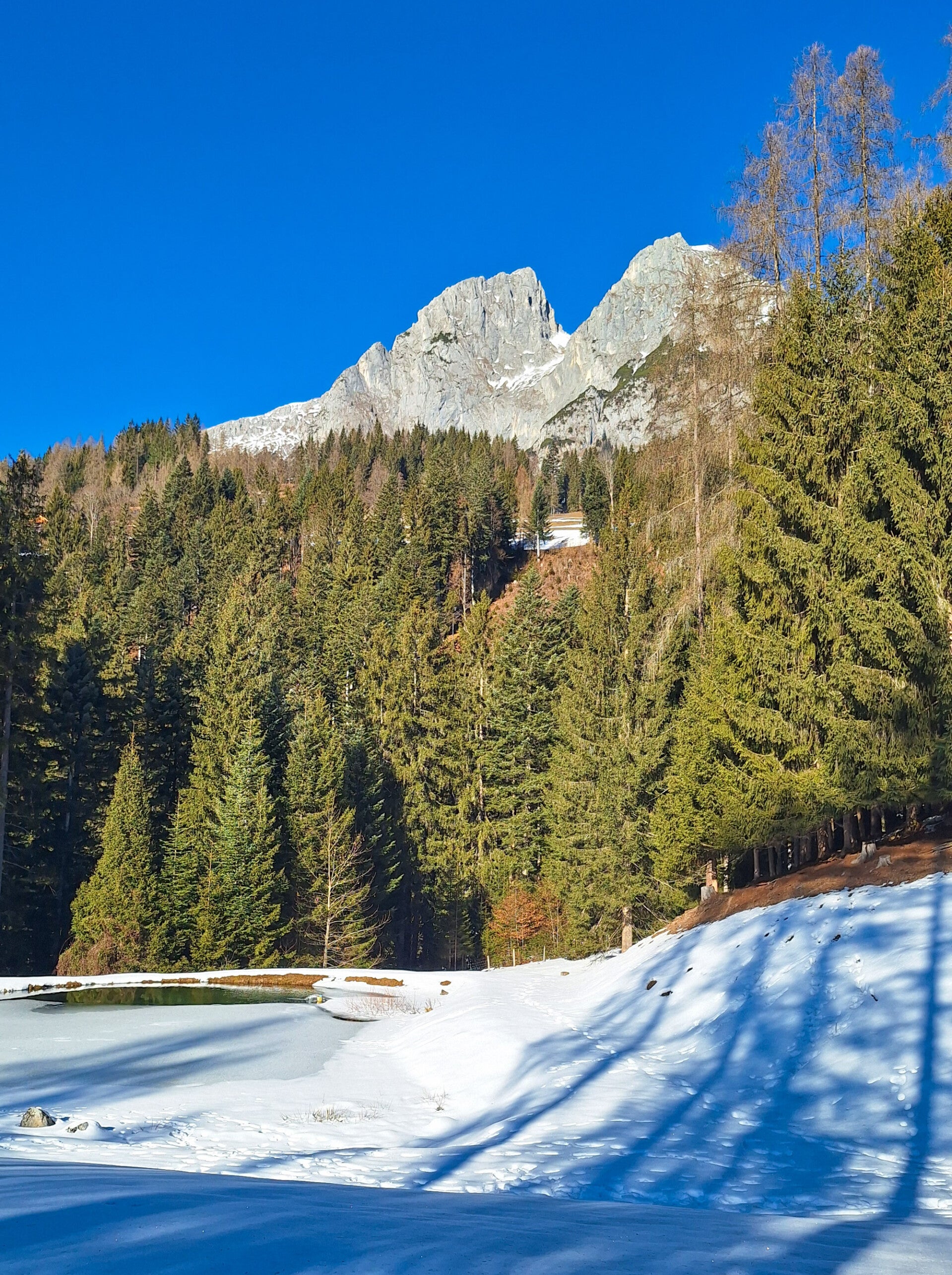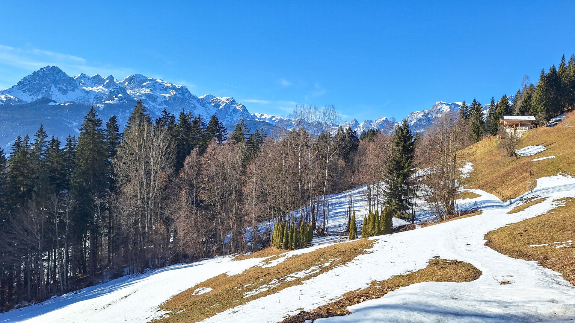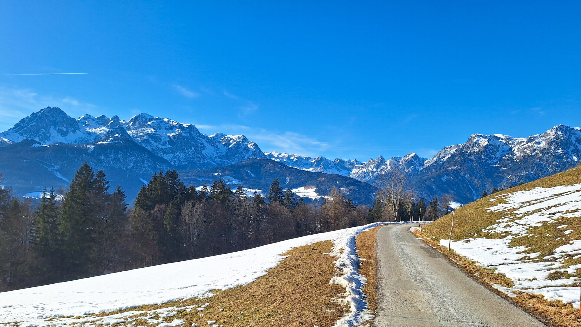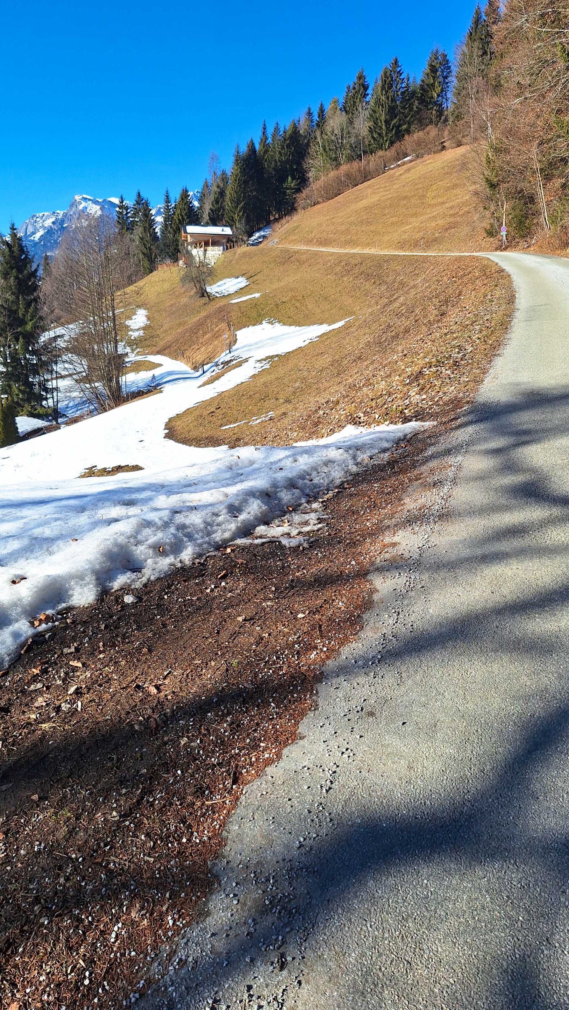 In der schneefreien Zeit kann man vom Sitzbankerl dann weitere Touren machen, wie zB zum Berggasthof Mahdegg, zur Werfenerhütte, nach Unterholz, zur Eisriesenwelt usw.). Ich habe es mir aber beim Sitzbankerl gemütlich gemacht, habe die Sonne genossen und bin dann wieder über die Straße zum Parkplatz zurück. War lässig.