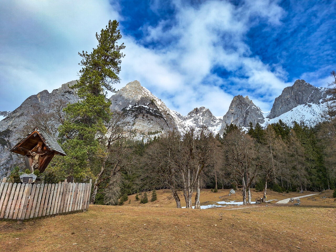 Diese Runde kann zu jeder Jahreszeit erwandert werden, zumal der Hinweg über eine Forststrasse mit viel Ausblick und Sonne führt. Die Mahdegg-Alm hat eine große Sonnenterrasse mit viel Ausblick. Nebenbei gibt's ein Marterl, das zum Fotoshooting einlädt - imposante Bergmassive dienen dabei als perfekte Hintergründe.