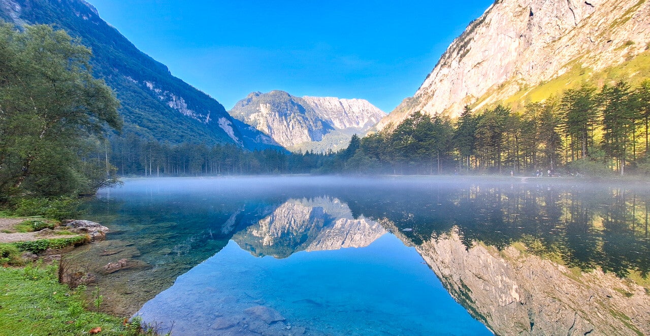 Dann geht man einfach den Weg entlang und kann dann mehrere Varianten wählen. Ich habe mich für die mittlere Variante entschieden - einfach über die Bluntaubrücke rüber und dann gleich mal rechts den Weg entlang. Ab dann kann man sich nicht mehr verlaufen, man kommt dann direkt zu den beiden Bluntauseen. Ich war relativ früh dort und konnte somit noch etwas Nebel am See genießen. Natürlich bin ich dann rund um den 'hinteren' Bluntausee, ein paar Bilder sind sich auch ausgegangen. Danach geht man einfach die restliche Strecke auf der Forststrasse bis zum 'Bärenwirt' am Ende dieses Tales. Ich war zu früh, der Wirt hatte noch geschlossen, also ging's auf der anderen Seite der Bluntau wieder zurück. Man kommt dann wieder zu den Bluntauseen und kann dann ein zweites Mal diese Seen mit deren Farbenspiel genießen. Bis zum Ausgangspunkt ist es dann nicht mehr weit.