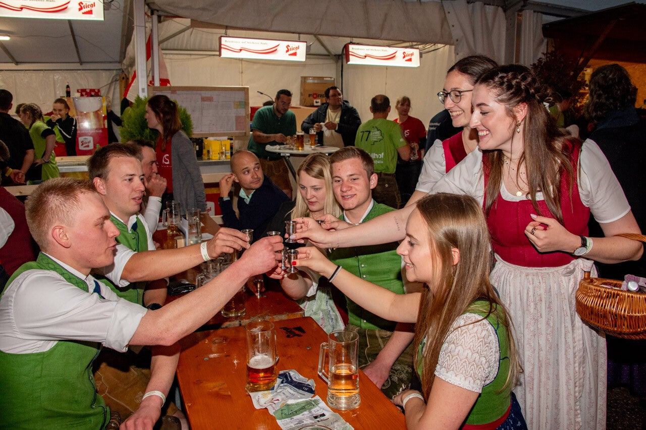 Eigentlich wollte der Verein 'Zur Alten Linde' im Jahr 2022 das 50jährige Bestandsjubiläum feiern - das ging's sicher allerdings wegen Corona nicht aus. Also feierte man 2 Jahre später dann einfach das 77jährige Jubiläum. Leider hat das Wetter nicht mitgespielt - kalt & nass. Aber das Bierzelt stand auf dem Asphalt-Parkplatz neben dem Fussballplatz - somit war trockenes Feiern im großen Bierzelt möglich.