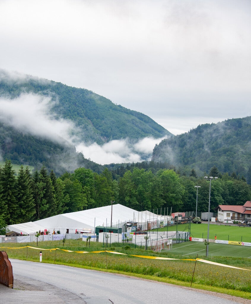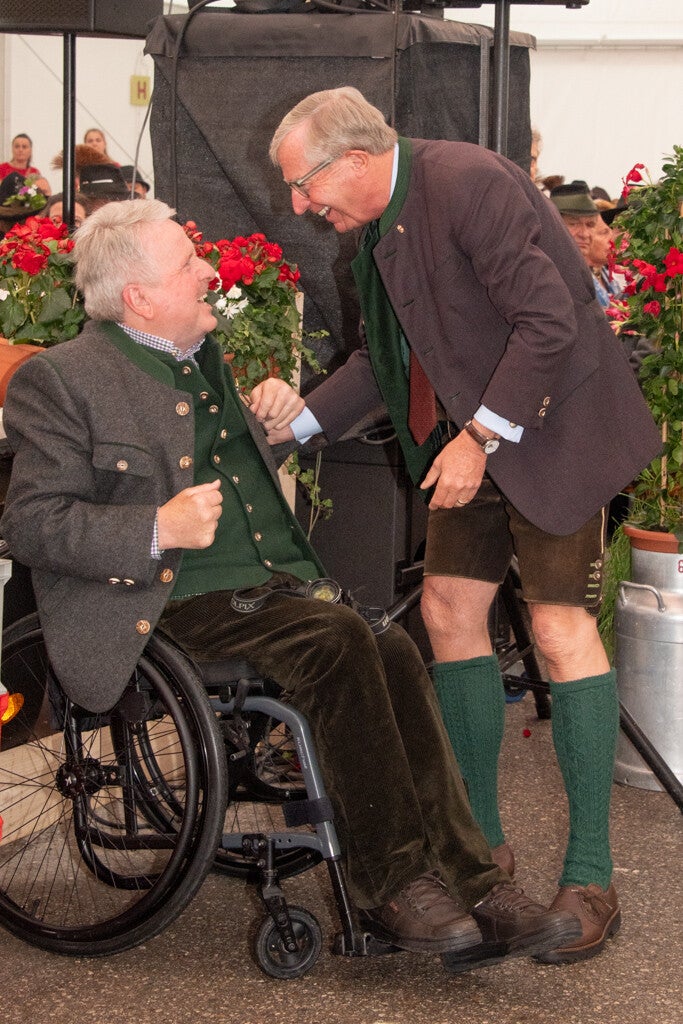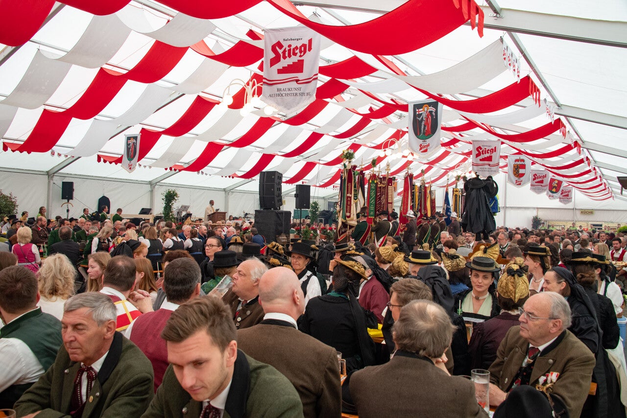Auch am Sonntag gab's nasses und kaltes Wetter - daher wieder alles im Festzelt. Auch diesmal haben sich alle Vereine beim Gottesdienst im Zelt benommen - den Pfarrer hat's sicherlich gefreut. Und auch diesmal war es ein lässiges Bild, die ganzen Fahnen aufgereiht im Festzelt bewundern zu können. Im Anschluss beehrte uns der Landeshauptmann mit einer kurzen Ansprache - danach gab's ein besonderes Highlight: