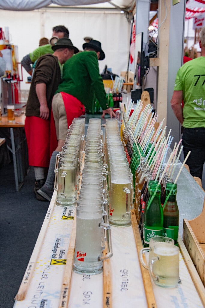 Der Stiegl-Chef Heinrich Kiener war persönlich anwesend (sehr selten) und hat ein Holzfass mitgebracht. Das kam natürlich super an, als der Landeshauptmann den Hahn reingeschlagen hat und das Bier floß !!!