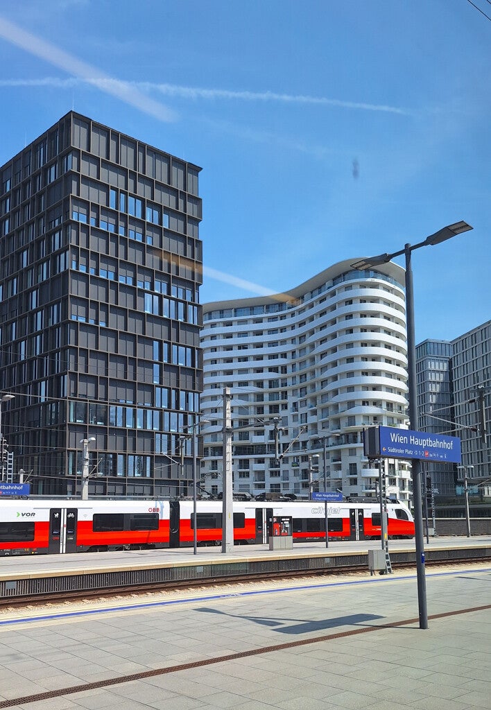 Das Auschecken war total easy - noch ein paar ehrliche Freundlichkeiten mit dem echt freundlichen Hotelpersonal ausgetauscht und los ging's Richtung Bahnhof (natürlich zu Fuß). Am Vorabend gab's ein Gewitter 🌩, um 09:00 Uhr hatten wir schon 29 Grad - es war sooooo richtig schwül 🥵.